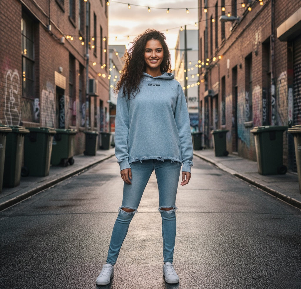 Vintage Washed Frayed-Hem Hoodie